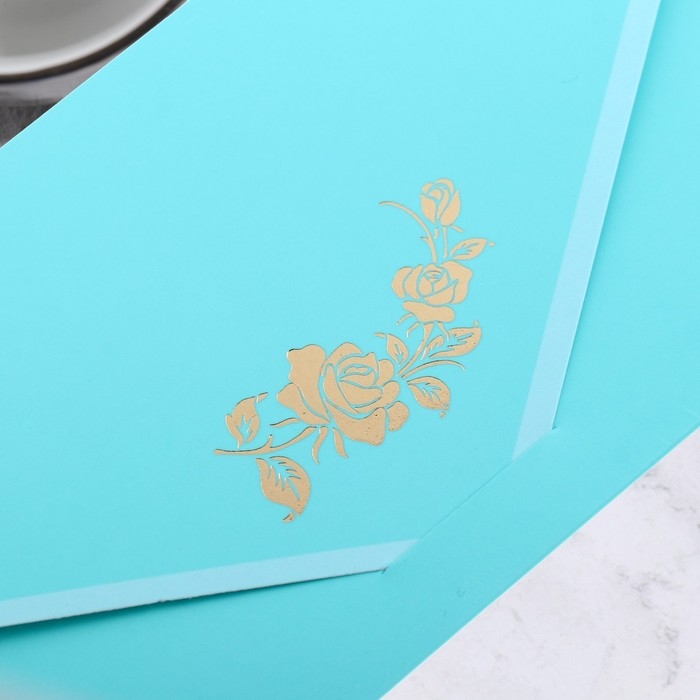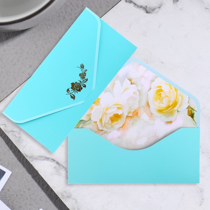 Конверт для денег "Поздравительный" бирюзовый, цветы, 19х9 см