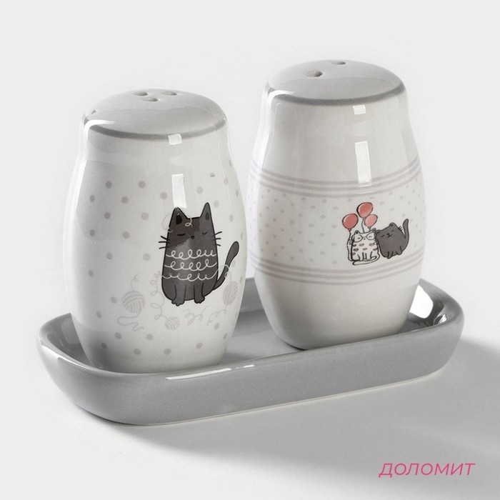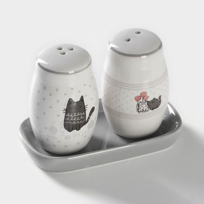 Набор для специй Доляна «Уютные коты», 3 предмета: солонка 80 мл, перечница 80 мл, подставка