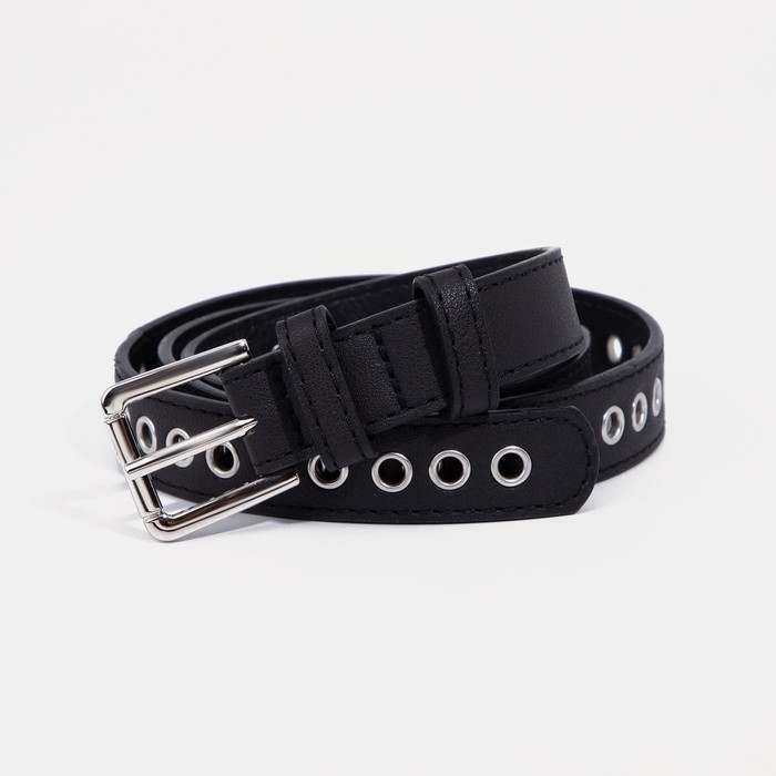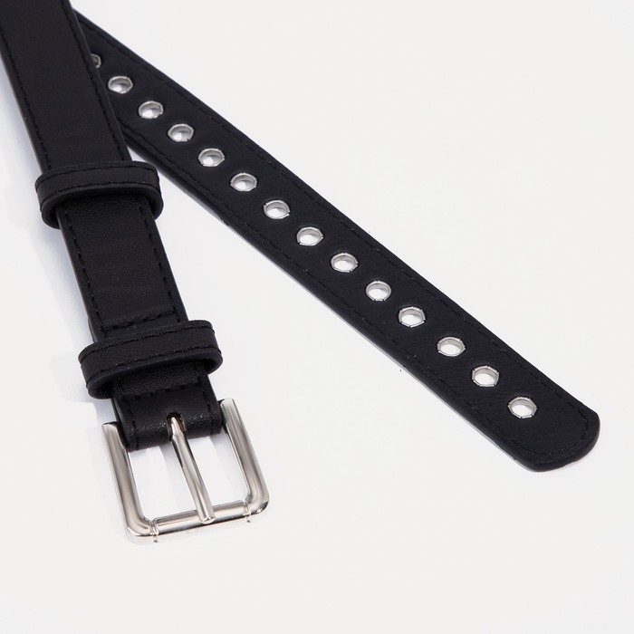 Ремень женский, ширина 2,3 см, пряжка металл, люверсы, цвет чёрный