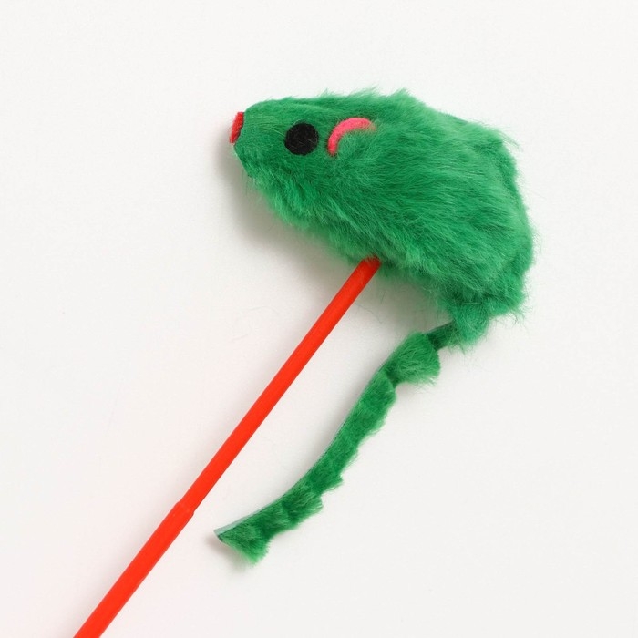 Дразнилка - удочка "Мышь из фетра с норковым хвостиком" на деревянной палочке, микс цветов