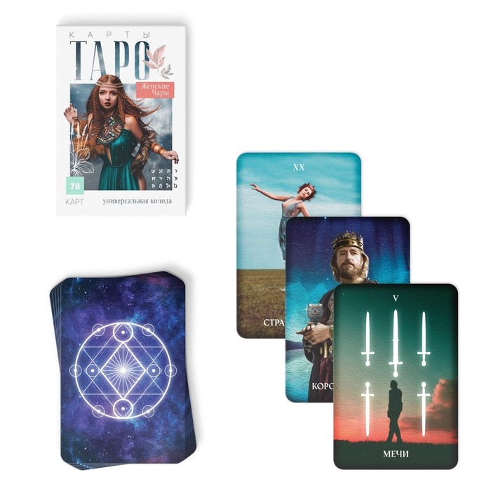 Таро — древнее и популярное карточное гадание. Оно позволяет найти ответы на вопросы прошлого, настоящего и будущего, а также получить совет от карт, понять причины своих поступков и поведения других людей. Карты Таро «Женские чары» — это колода, заряженная необыкновенной силой. Она притягивает спокойствием иллюстраций. Эта универсальная колода поможет не только ответить на вопросы из разных сфер жизни, но и успешно практиковать медитативное самопознание.