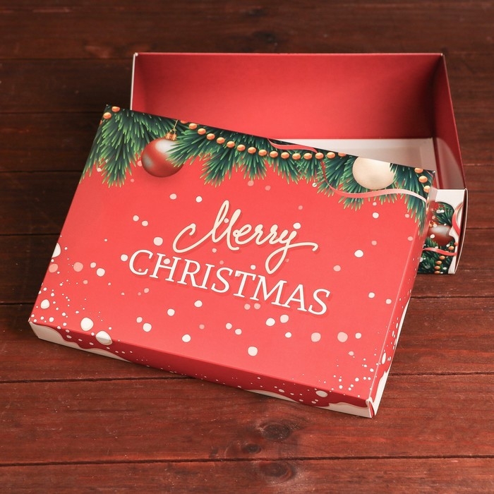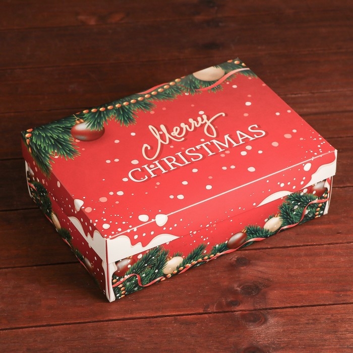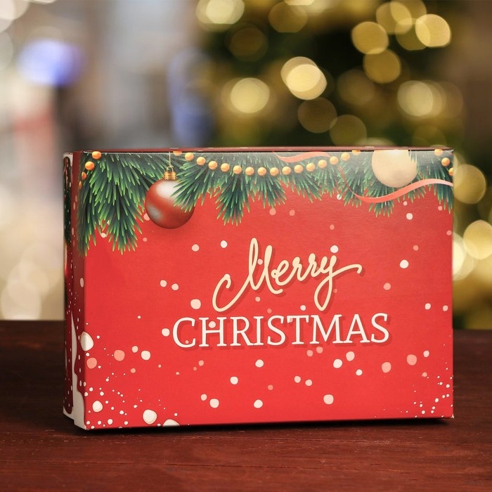 Новый год. Подарочная коробка, сборная "Счастливого Рождества", 24 х 17 х 8 см