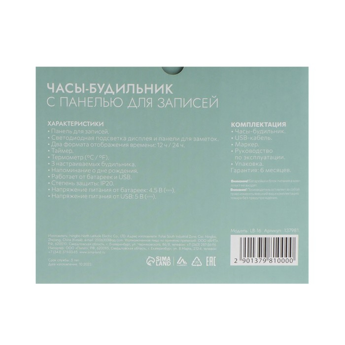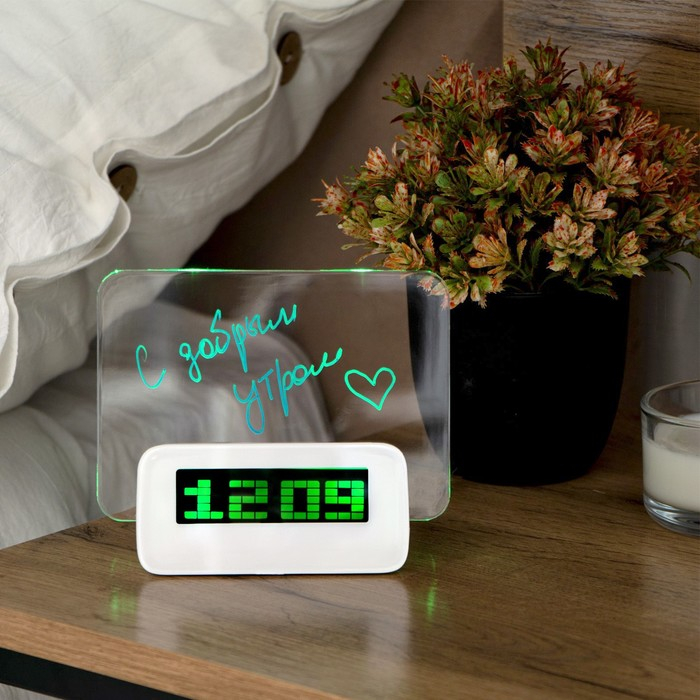 Будильник Luazon LB-16 "Послание", с маркером, подсветка зеленого цвета, белый