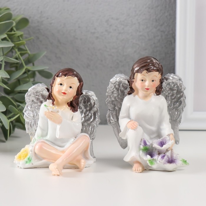 Сувенир полистоун "Девочка ангел в незабудках" МИКС 7,5х6,8х6,8 см