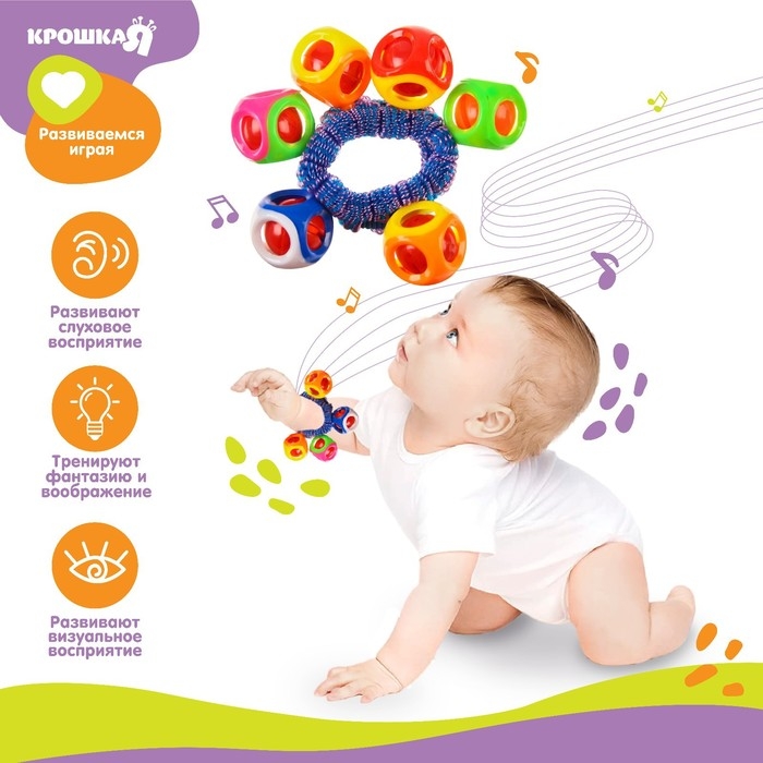 Погремушка - браслет «На ручку», 6 бубенчиков, цвет МИКС, Крошка Я