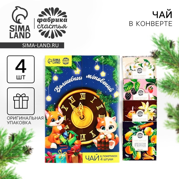 Чай в пакетиках «Волшебных мгновений» в открытке, 4 шт. x 1,8 г.