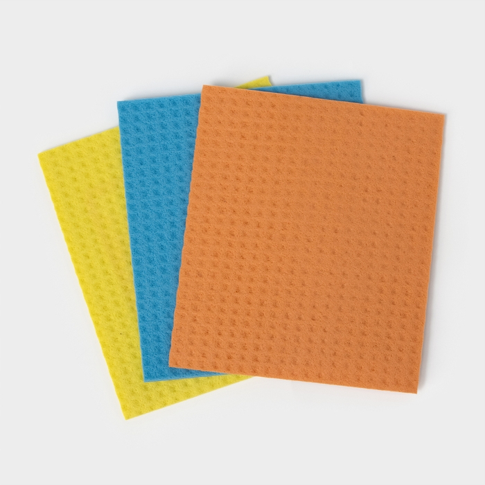 Салфетки из целлюлозы губчатые Доляна, тряпки для уборки, 15×17 см, 3 шт