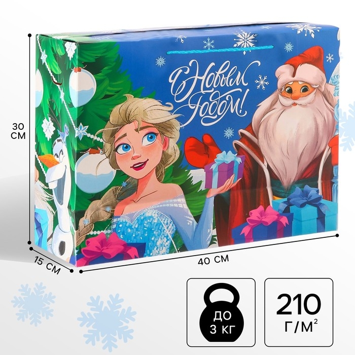 Новый год. Пакет-коробка "С Новым Годом!" 15х40х30 см, Холодное Сердце