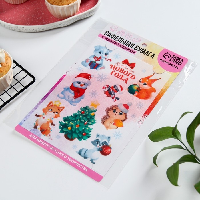 Вафельные картинки съедобные «Веселого нового года», для декора тортов и капкейков, 1 лист