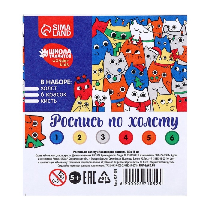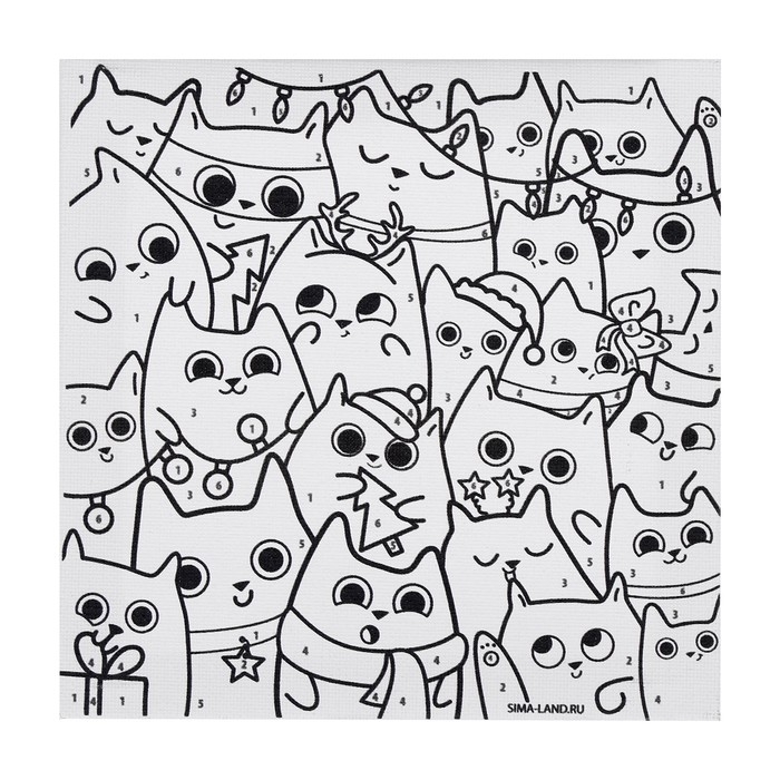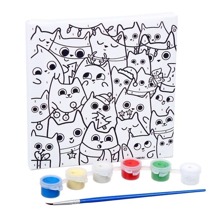 Картина по номерам на новый год на холсте с подрамником «Новогодние котики», 15 х 15 см