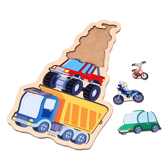 Рамка-вкладыш «Транспорт» познакомит малыша с видами наземного транспорта и поможет потренировать полезные навыки.