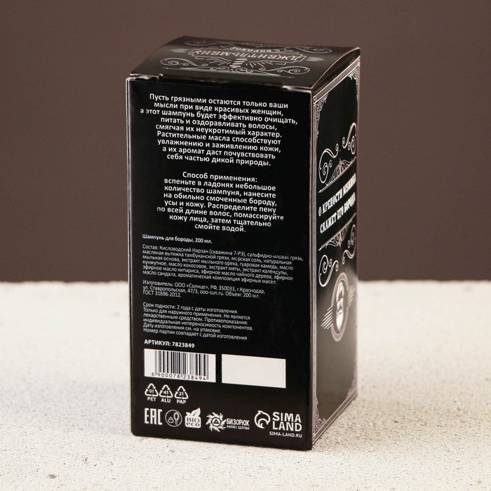 Способ применения: вспеньте в ладонях небольшое количество шампуня, нанесите на обильно смоченную бороду, усы и кожу. Распределите пену по всей длине волос, помассируйте кожу лица, затем тщательно смойте водой.