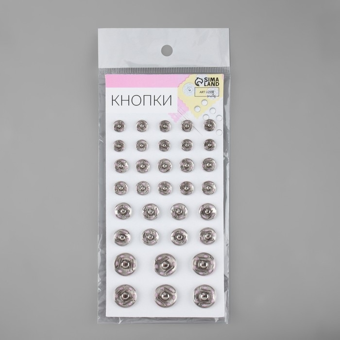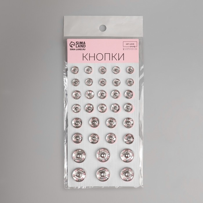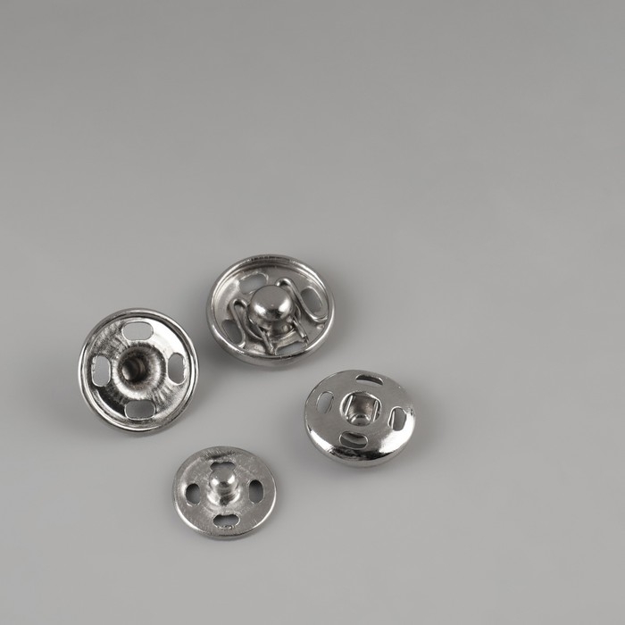 Кнопки пришивные, d = 8 / 10 / 12 / 16 мм, 34 шт, цвет серебряный