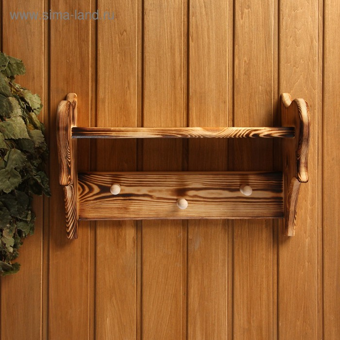 Полка вешалка обожжённая, 3 крючка, 43×27×17 см