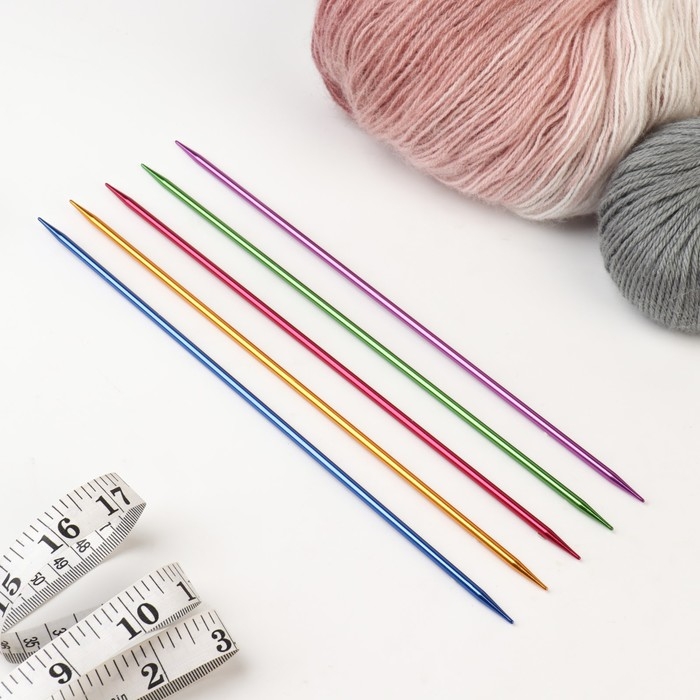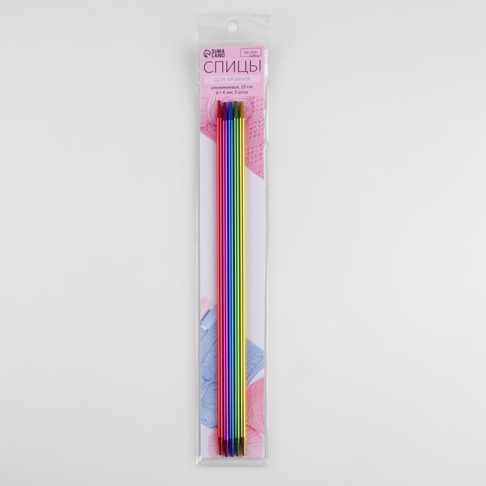 Спицы для вязания, чулочные, из алюминия, d = 4 мм, 25 см, 5 шт, цвет МИКС
