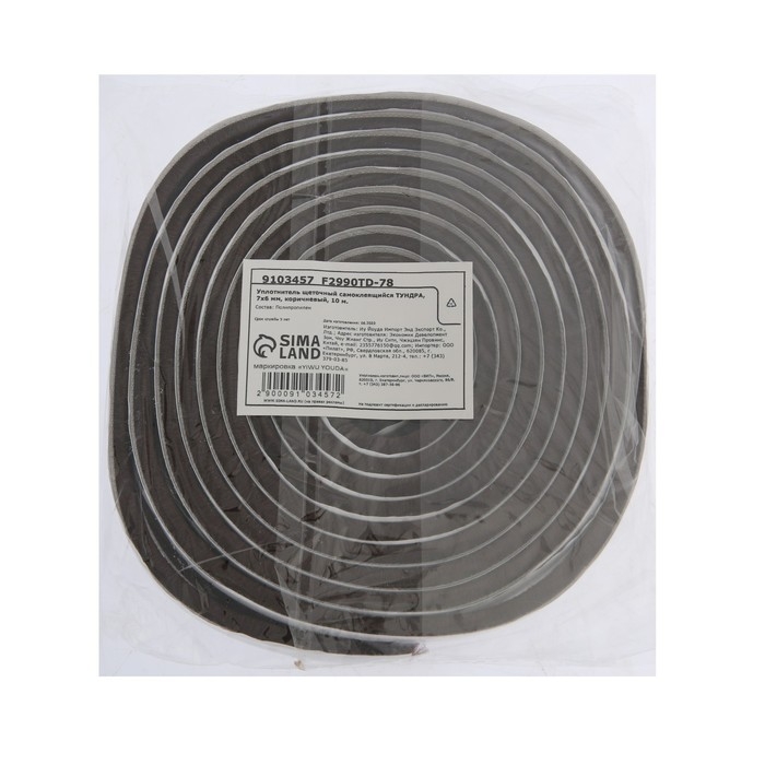 Уплотнитель щеточный самоклеящийся ТУНДРА, 7х6 мм, коричневый, 10 м.