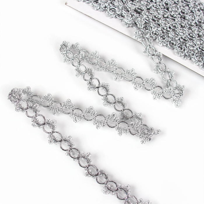 Тесьма серебро «Петельки» с трилистниками, ширина 2,7, намотка 10 м