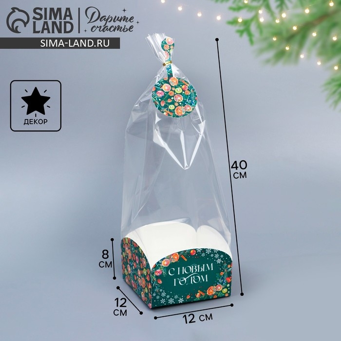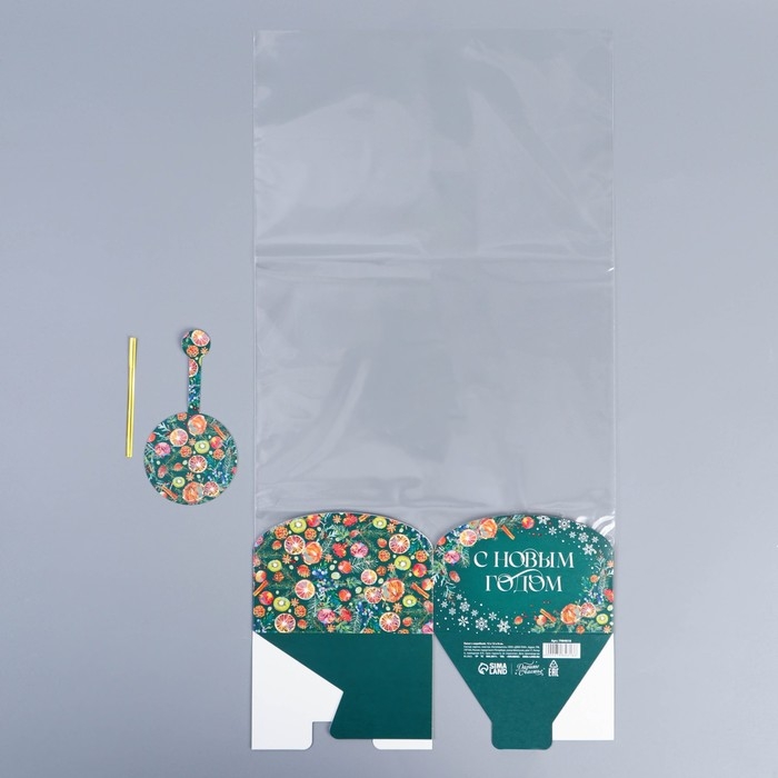 Пакет с коробкой «Новогодняя ботаника», 12 х 12 х 40 см, Новый год
