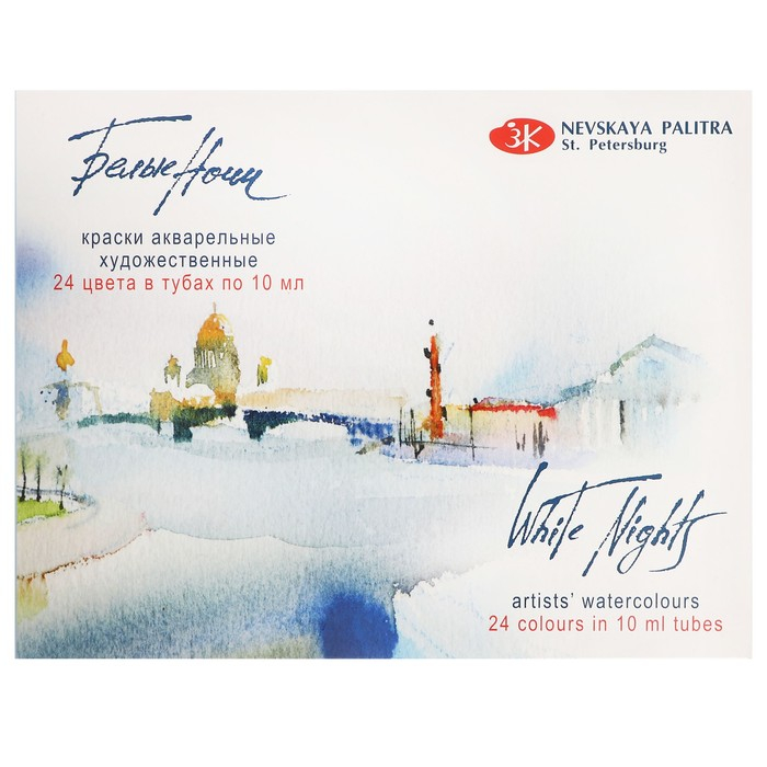 Акварель художественная в тубе, 24 цвета х 10 мл, ЗХК "Белые ночи", 19411228