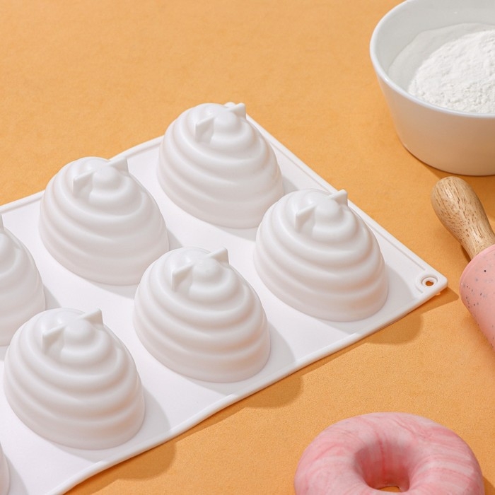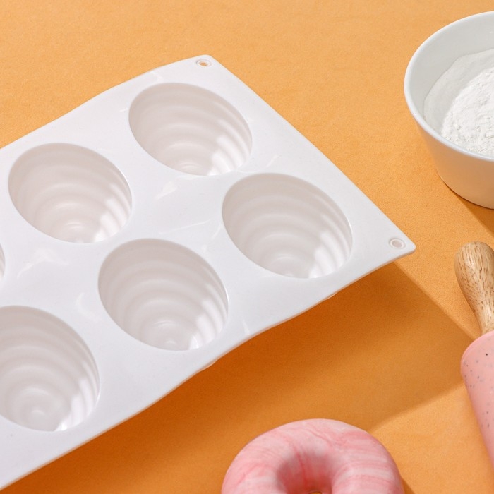 Форма для муссовых десертов и выпечки Доляна «Кристалл», 29,5×17×3,5 см, 6 ячеек (d=6,5 см), цвет белый