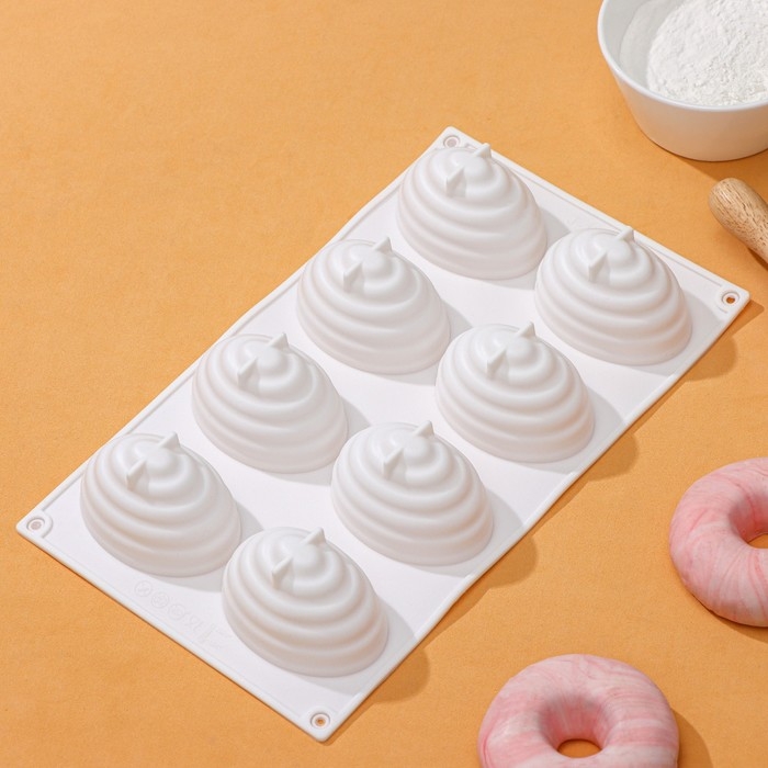 Форма для муссовых десертов и выпечки Доляна «Твид», силикон, 29,5×17×1,4 см, 8 ячеек (d=6 см), цвет белый