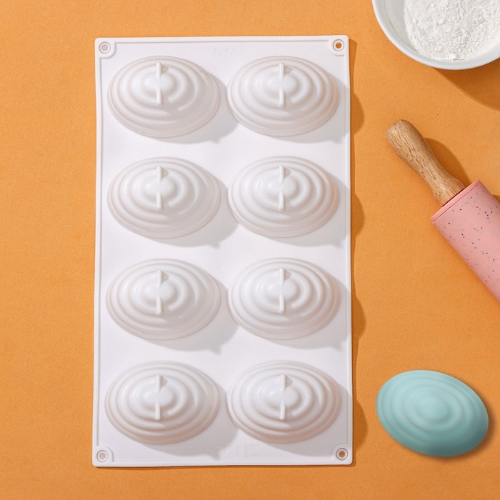 Форма для муссовых десертов и выпечки KONFINETTA «Джелли», силикон, 30×17,5×4 см, 8 ячеек (7,4×5,3×4 см), цвет белый