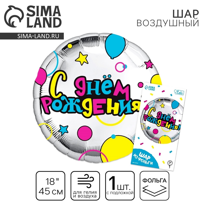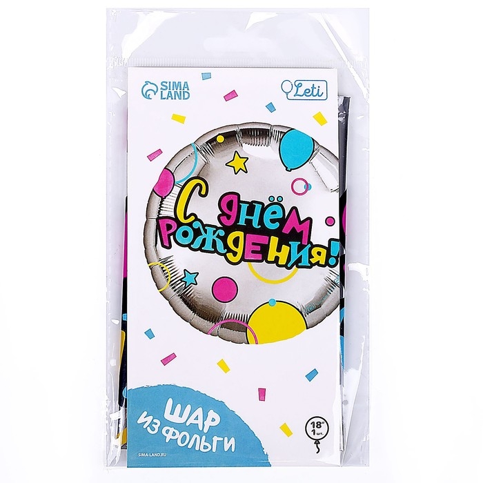 Воздушный шар фольгированный 18" «С Днем рождения» круг, с подложкой