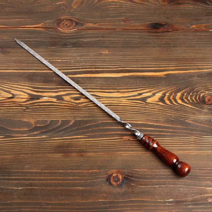 Шампур узбекский с деревянной ручкой, рабочая длина - 40 см, ширина - 12 мм, толщина - 3 мм