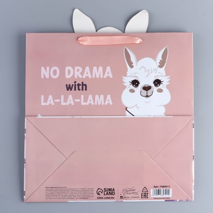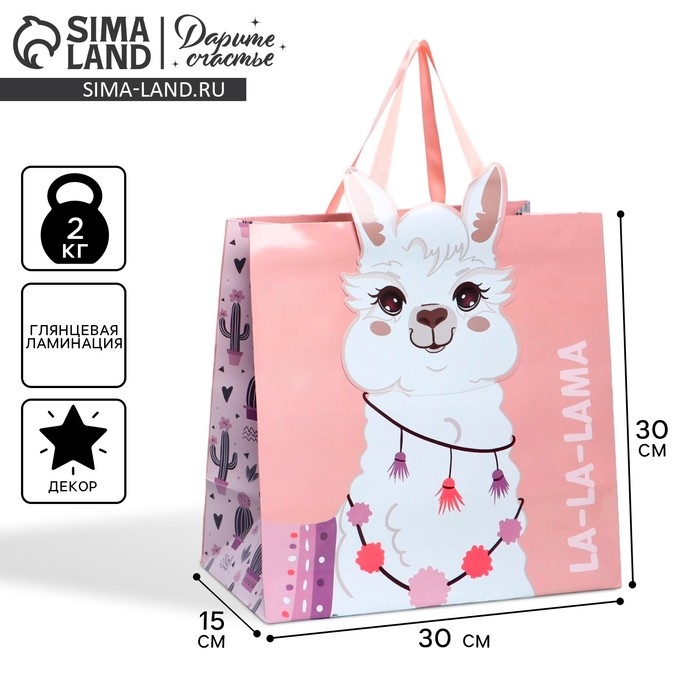 Пакет подарочный, упаковка, «Лама», 30 х 30 х 15 см