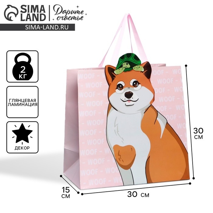 Пакет подарочный, упаковка, «Собака», 30 х 30 х 15 см