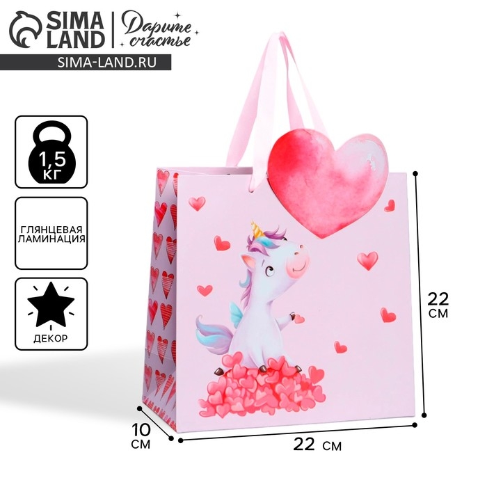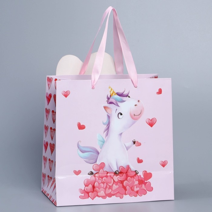 Пакет подарочный, упаковка, «Единорог», 22 х 22 х 10 см