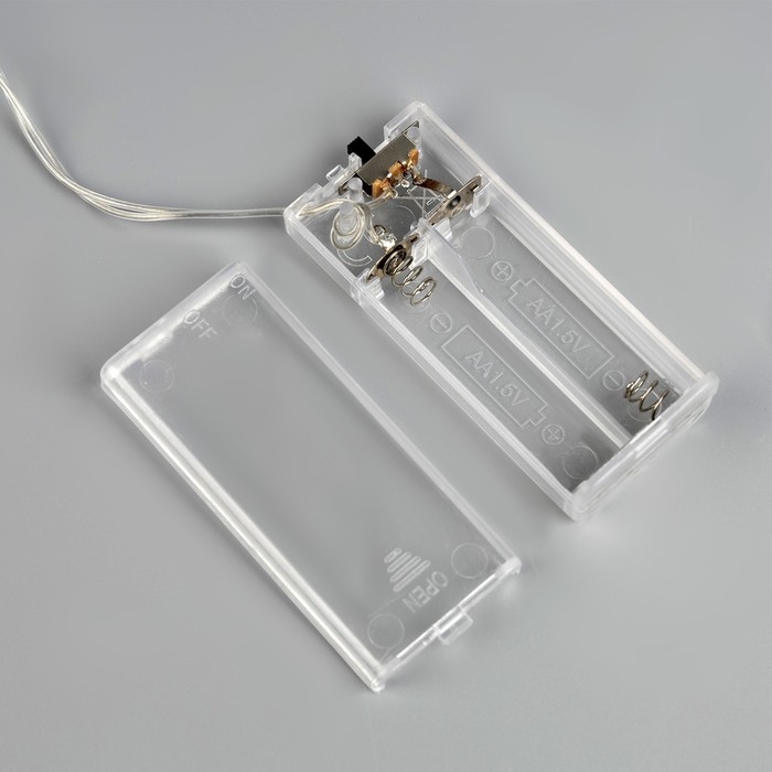 Гирлянда «Нить» 2 м с насадками «Снежинка», IP20, прозрачная нить, 10 LED, батарейки AAх2 (нет в комплекте), свечение тёплое белое