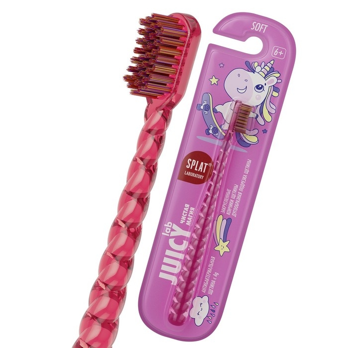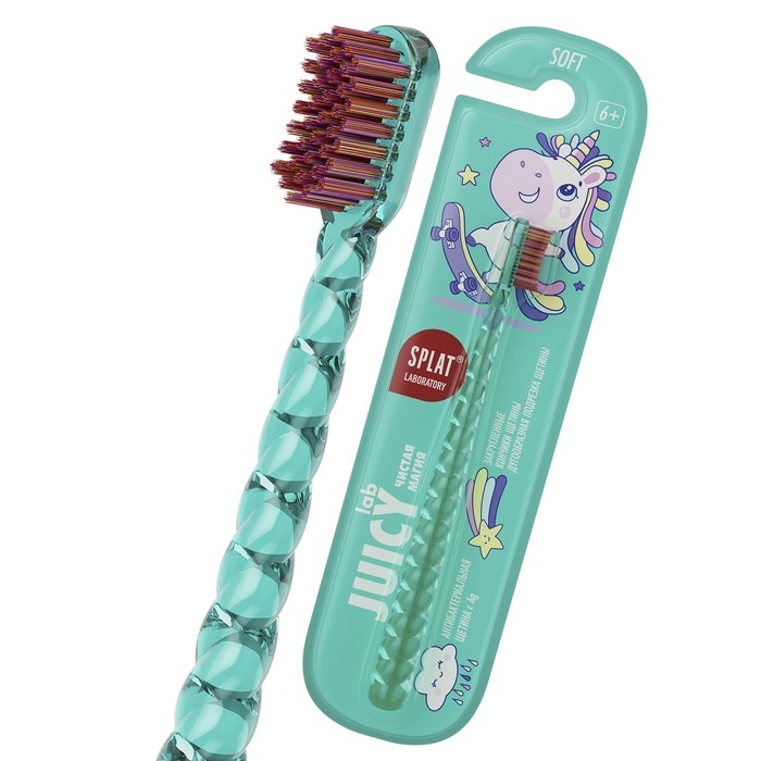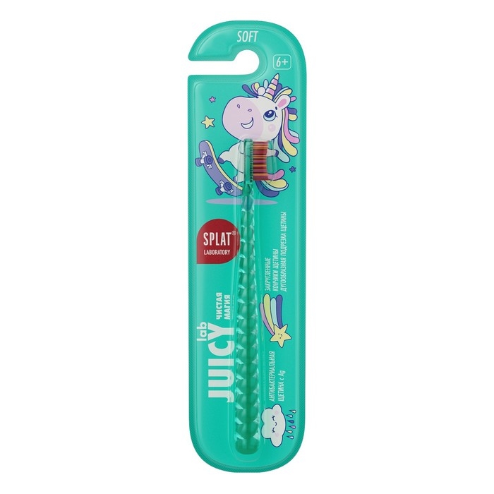 Детская зубная щетка серии JUICY LAB «SPLAT UniMagic / Магия единорога» с ионами серебра. Мягкая щетина.