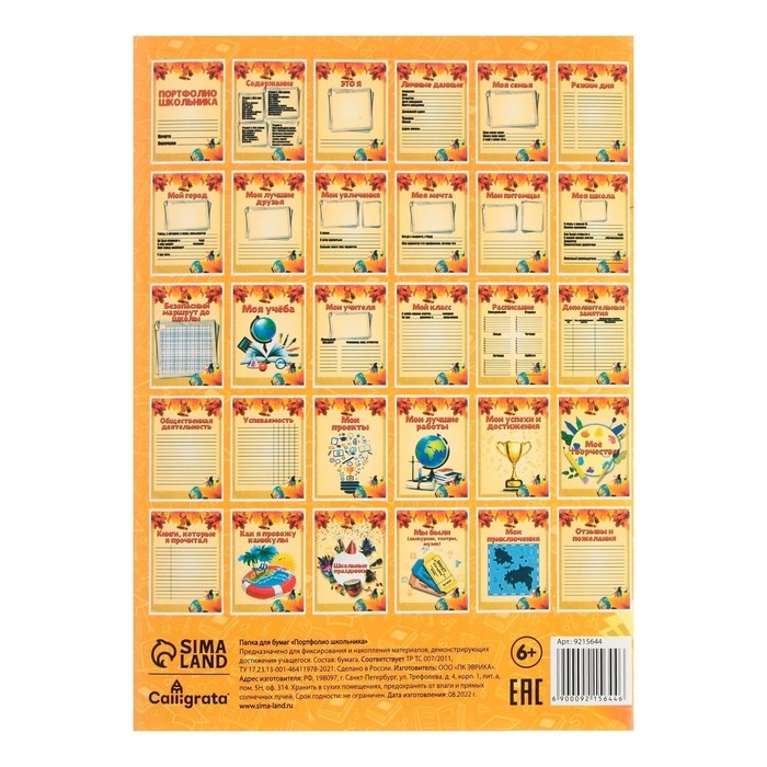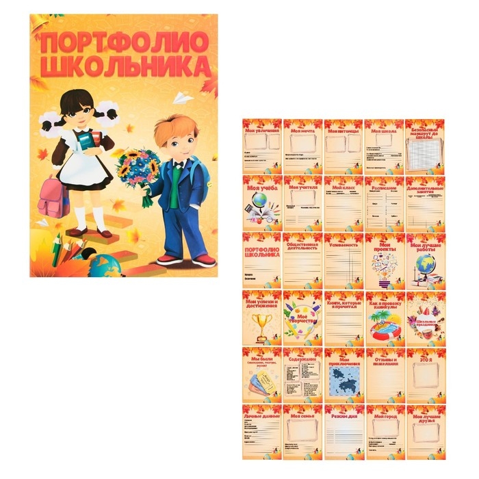 Листы-вкладыши для портфолио школьника, 30 листов (титульный, содержание, 28 разделов ) "Дети", в папке