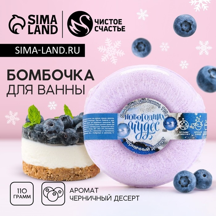 Бомбочка для ванны «Новогодних чудес!», 140 г, аромат черничного десерта, Новый Год