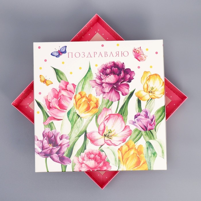 Коробка подарочная складная, упаковка, «Цветы», 26 х 26 х 8 см