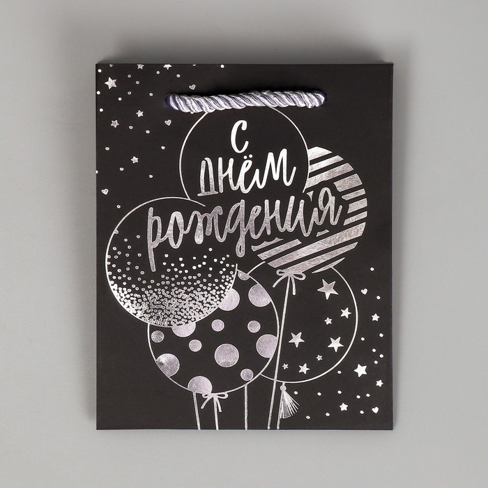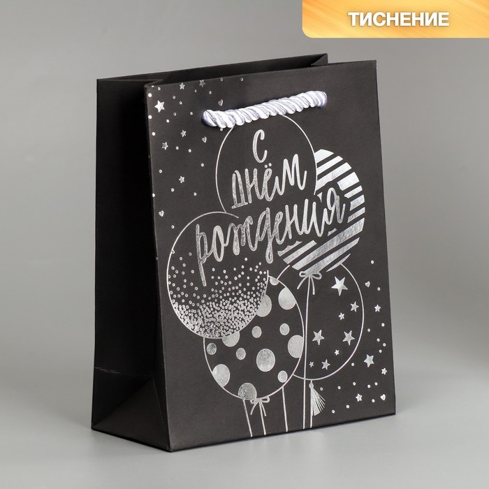 Пакет подарочный, упаковка, «С Днём рождения!», чёрный крафт, 12 х 15 х 5,5 см