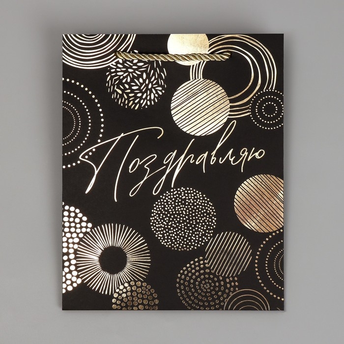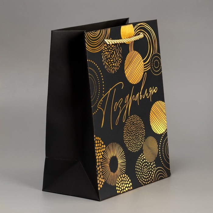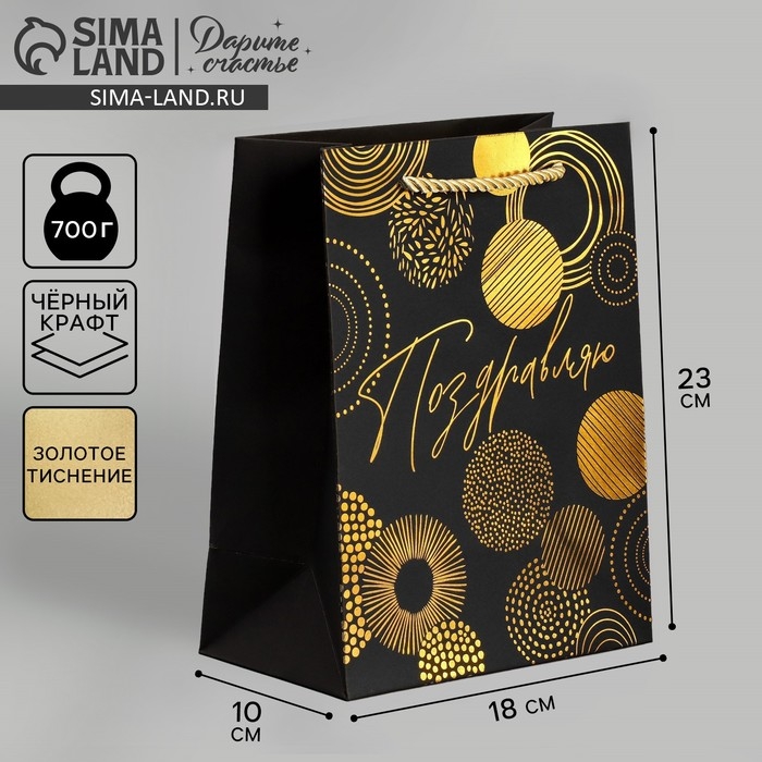 Пакет подарочный, упаковка, «Поздравляю», чёрный крафт, 18 х 23 х 10 см