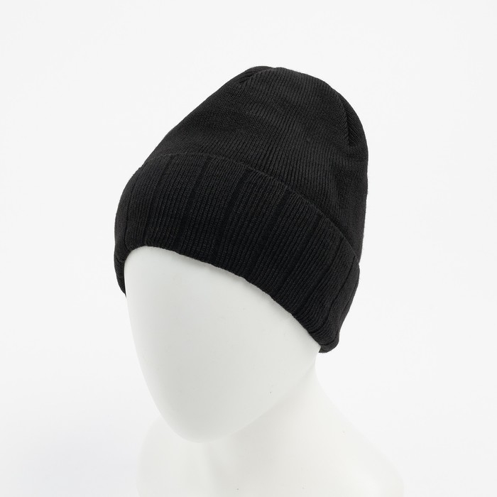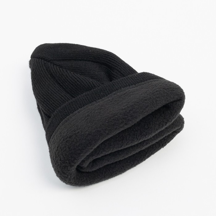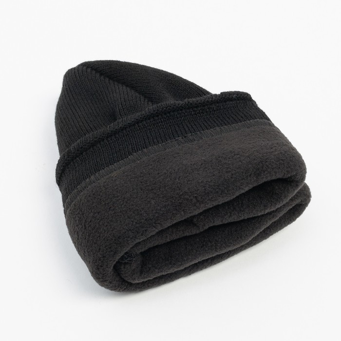 Шапка мужская с флисовым подкладом, цвет чёрный МИКС, размер 56-58