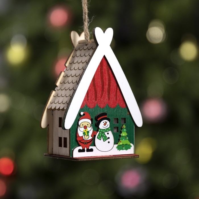 Ёлочная игрушка «Домик со снеговиком», от батареек, свечение тёплое белое