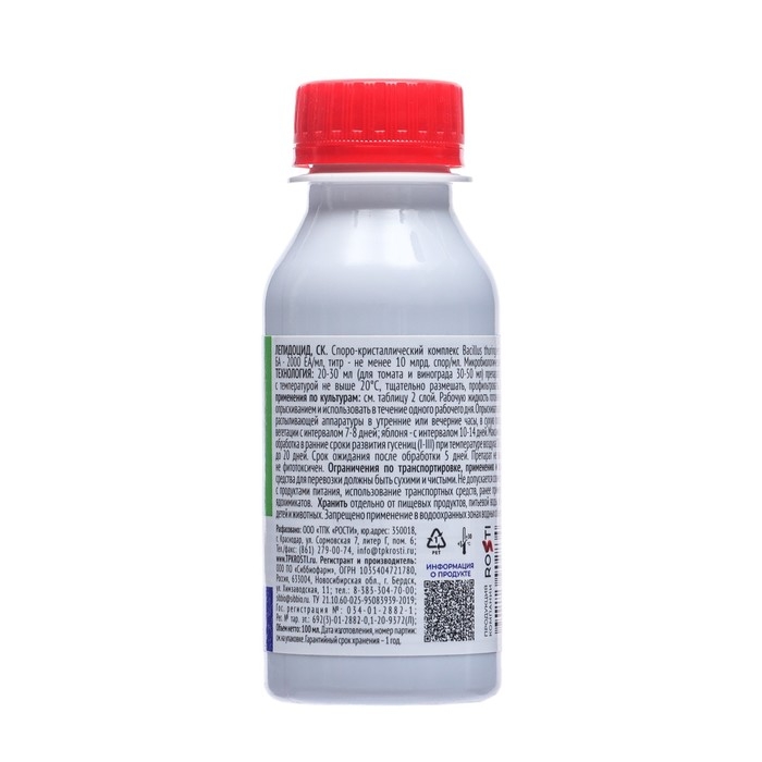 Лепидоцид отличается большой биологической активностью и длительным сроком хранения. Экономичен в применении. Это препарат новейшего поколения, вырабатываемый живыми микроорганизмами (Bacillus thuringiensis, var. kurstaki). По происхождению он подобен тем ядам, которые представители живой природы вырабатывают для самозащиты. Практически безвреден для человека и животных. Период ожидания перед уборкой урожая или выходом для полевых работ - от 1 до 5 суток.