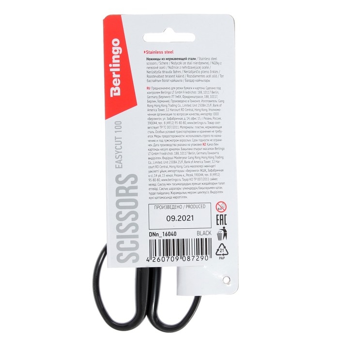 Ножницы 16cм Berlingo "Easycut 100", европодвес