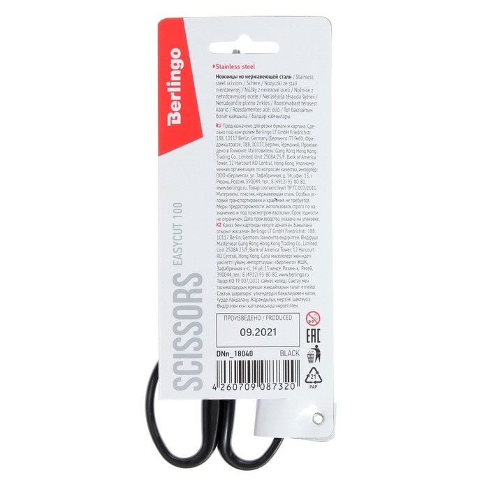 Ножницы 18cм Berlingo "Easycut 100", европодвес