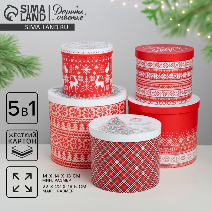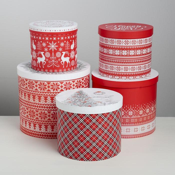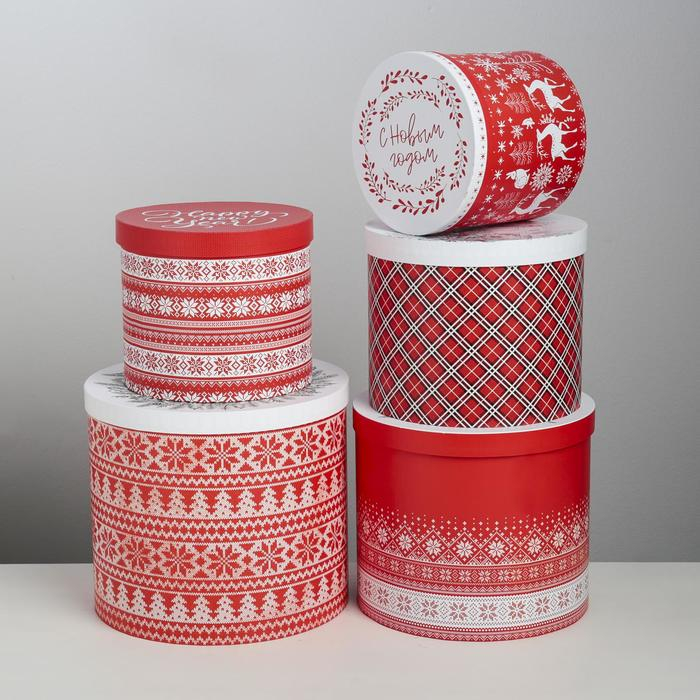 Набор подарочных коробок 5 в 1 «Скандинавские узоры», 13 х 14‒19.5 х 22 см, Новый год