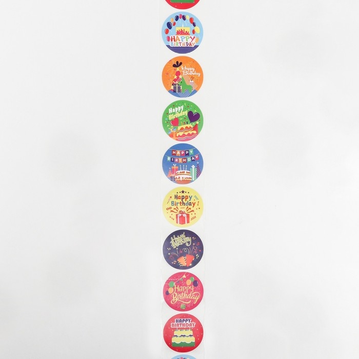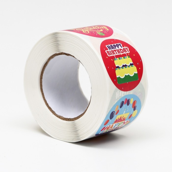 Наклейки в рулоне "День Рождения",500 шт,3,8 х 3,8 см