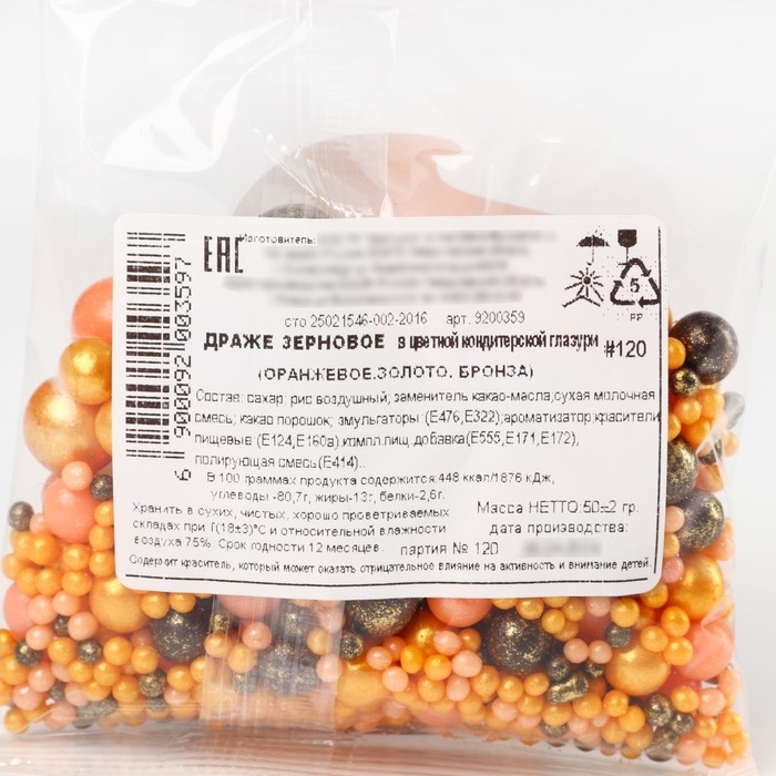 Посыпка кондитерская мягкая: золотая, персиковая, черная, 50 г.