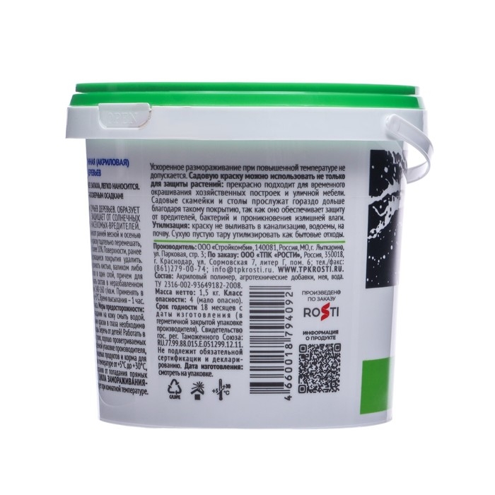 Продукт отличается экологичностью, образует паропроницаемое «дышащее» покрытие, способное защитить растения от болезней, вредителей и солнечных ожогов, повысить зимостойкость деревьев.