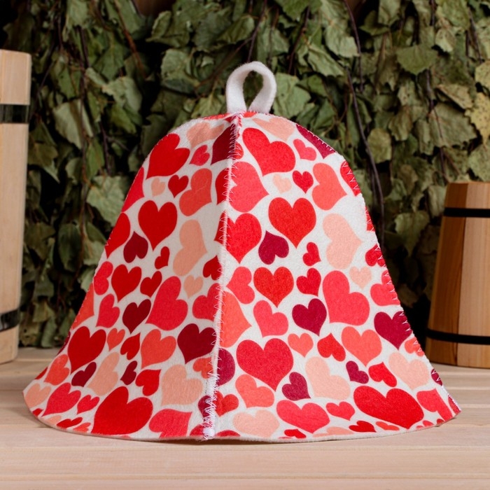 Шапка для бани "Сердечки"