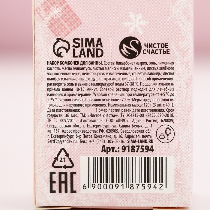 Подарочный набор косметики «Счастья!», бомбочки для ванны с добавками, 3 х 40 г, Новый Год