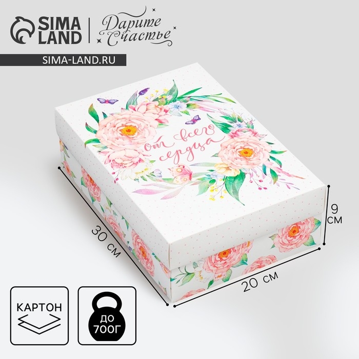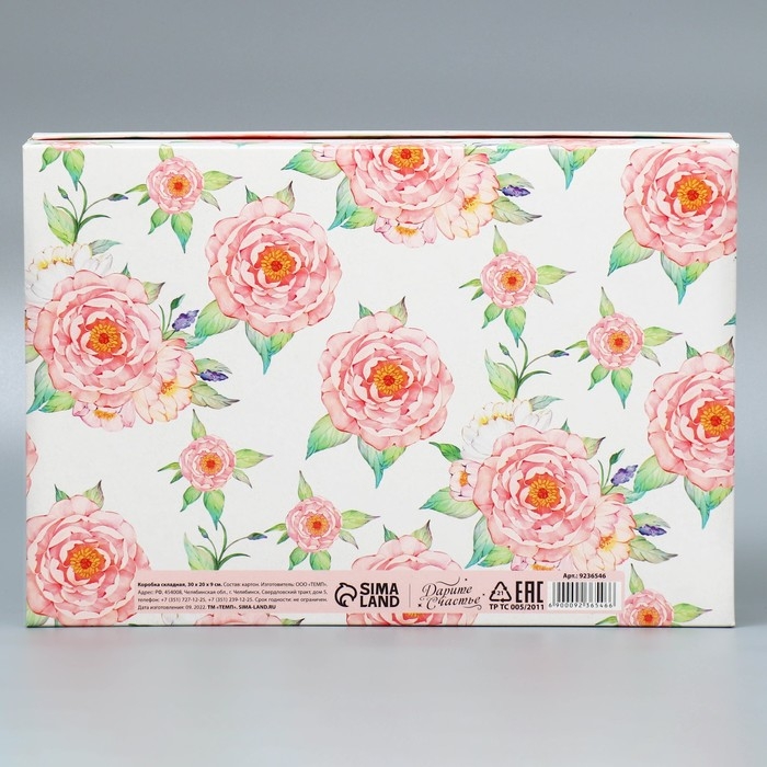 Коробка подарочная складная, упаковка, «Цветы», 30 х 20 х 9 см